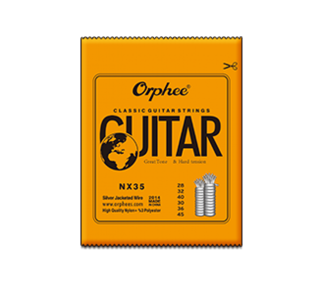Orphee Classic guitar strings NX series for 1st. 2nd.3rd are using nylon 608 raw material.It has stable stretch and elasticity.The raw mat- erial are single-in and singleout from high temperature to prevent cracking from the inside.At the same time Ensure uniform symmetry and has a bright appearance and smoot h feel.4th.5th.6th using 608 nylon multifilament + silver plated wire.Surface layer is polished and then pa- ssivated and single layers nano coated.Ensure that the feeling smooth while keeping the original sound basically did not changed,Precision anti-vibration instrument and nearrigorous tensile test make the inner core and the outer layer of the wound are tightly combined reac- hed the resonance effect of the golden ratio.
